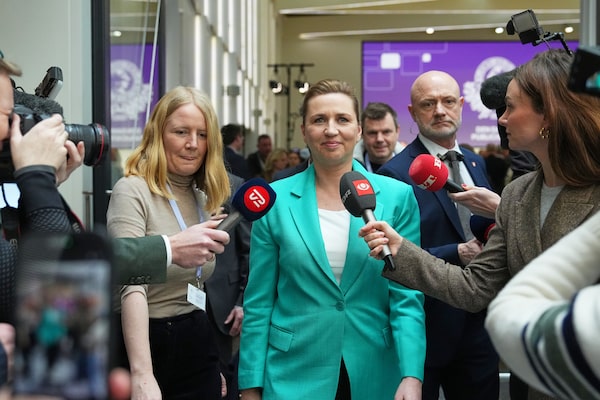 Chairman of the Social Democrats Mette Frederiksen leaves after a party leaders debate at the Confederation of Danish Industry's building in Copenhagen on Wednesday.Sergei Grits/The Associated Press