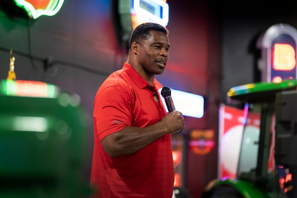 Herschel Walker holds a campaign event at a car dealership in rural in Ocilla, Ga., on July 19, 2022.NICOLE CRAINE/The New York Times News Service