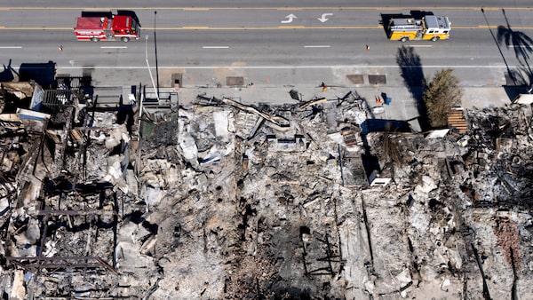 A drone view shows fire trucks next to a site where houses were burnt down by the Palisades Fire, in Malibu, Calif, on Jan. 16.Mike Blake/Reuters