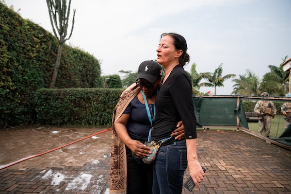 Relatives and colleagues of Ms. Buisset mourn after her body was taken away from the residence in Goma, March 11.JOSPIN MWISHA/AFP/Getty Images