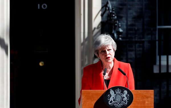 British Prime Minister Theresa May speaks in the street outside 10 Downing Street in London, England, Friday, May 24, 2019. Ms. May says she'll quit as UK Conservative leader on June 7, sparking contest for Britain's next prime minister.The Associated Press