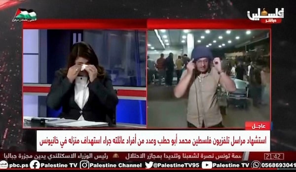 The Ramallah-based anchorwoman on the split screen began to weep.