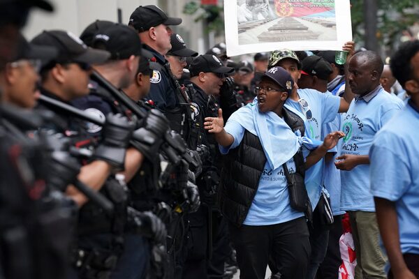 Two weeks earlier, in London, four police officers were injured and eight people arrested after pro-democracy Eritreans protested outside another Eritrean event.