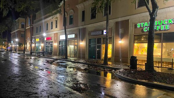 Small pieces of debris are in the downtown area of Safety Harbor, Fla., Wednesday, Nov. 11, 2020, as Tropical Storm Eta nears the area.Luis Santana/The Associated Press