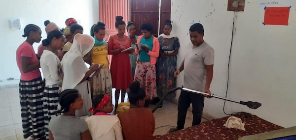 Recruits in the Amhara regional city of Woldia, (700 km north of the capital) attend a pre-departure training session.Supplied