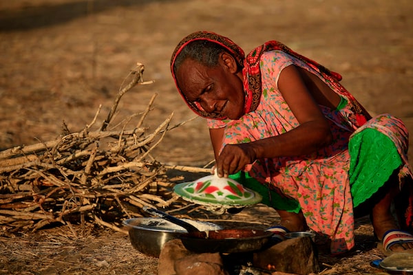 A refugee prepares food at the Um Rakuba camp in Sudan.ASHRAF SHAZLY/AFP via Getty Images/AFP/Getty Images