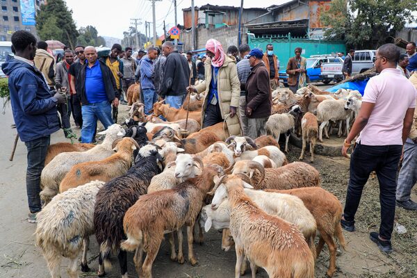 Traders sell sheep in Sholla Market, the day before the Ethiopian New Year, in Addis Ababa, on Sept. 10.The Associated Press
