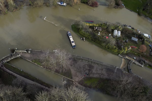 FILE - A narrow boat sits in the floods of the river Thames in Oxford, England, Sunday, Jan. 7, 2024. Britain was hit by heavy rainfall last week following storm Henk, which led to flooding in parts of the UK. Europe is the fastest-warming continent and its temperatures are rising at roughly twice the global average, two top climate monitoring organizations reported Monday, April 22, 2024, warning of the consequences for human health, glacier melt and economic activity. (AP Photo/Frank Augstein, File)Frank Augstein/The Associated Press