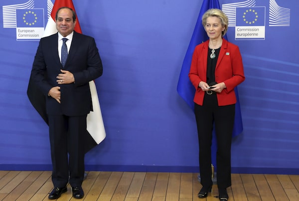 European Commission President Ursula von der Leyen, right, and Egypt's President Abdel Fattah El-Sisi attend a meeting on the sidelines of an EU Africa summit in Brussels, on Feb. 17, 2022.Francois Walschaerts/The Associated Press