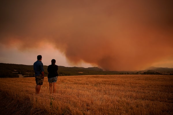 Residents look at wildfire near Tarragona, in the northeastern region of Catalonia, Spain, on July 25.Joan Mateu Parra/The Associated Press