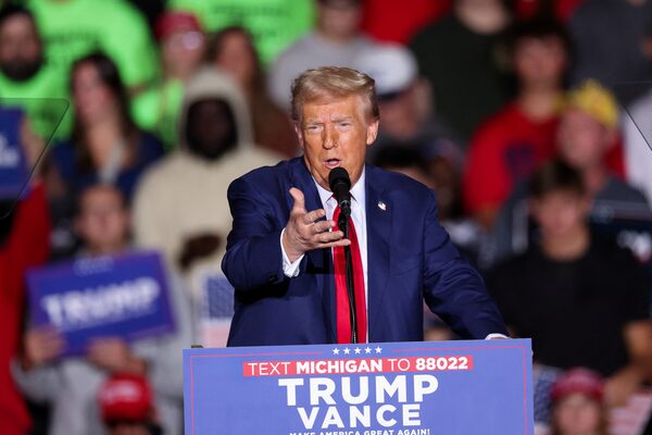 Republican presidential nominee Donald Trump speaks during a rally in Saginaw, Mich., on Oct. 3.Brendan McDermid/Reuters