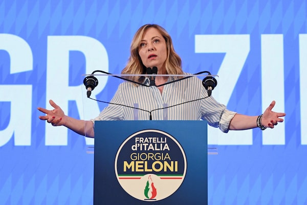 Italy's Prime Minister Giorgia Meloni speaks following the announcement of the partial results of the European Parliament elections, in Rome, Italy, June 10, 2024 REUTERS/Alberto LingriaAlberto Lingria/Reuters