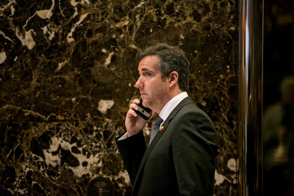 Michael Cohen, U.S. President Donald Trump's long-time personal attorney, waits in the lobby of Trump Tower in New York on Jan. 6, 2017.SAM HODGSON/The New York Times News Service
