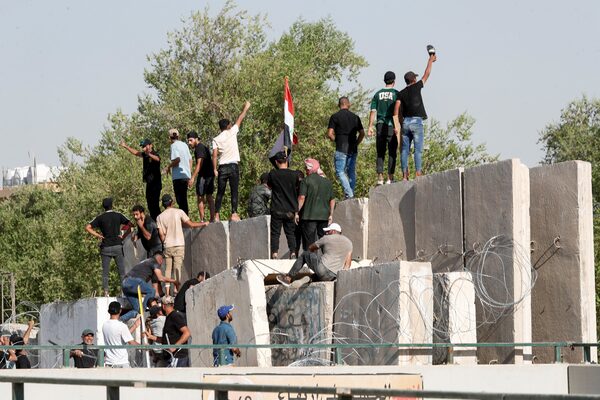 Protesters loyal to cleric Muqtada al-Sadr pulled down the cement barriers outside the government palace with ropes and breached the palace gates. Many rushed into the lavish salons and marbled halls of the palace, a key meeting place for Iraqi heads of state and foreign dignitaries.