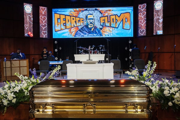 The casket of George Floyd rests in front of the stage before a memorial service for Floyd following his death in Minneapolis police custody, in Minneapolis, Minnesota, U.S., June 4, 2020.LUCAS JACKSON/Reuters
