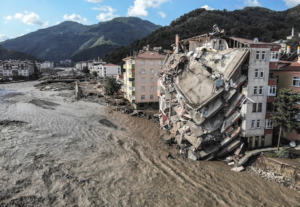 Destroyed buildings after floods and mudslides killed about two dozens of people, in Bozkurt town of Kastamonu province, on Aug. 13.Ismail Coskun/The Associated Press