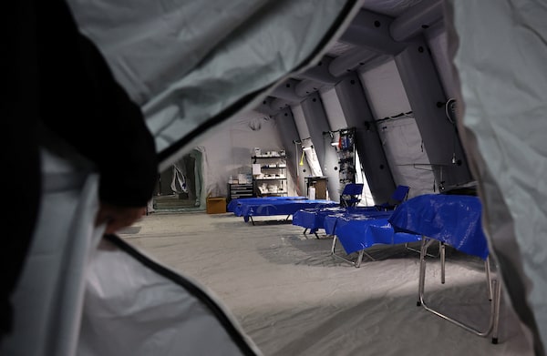 A tent housing an emergency room of a field hospital, in Lviv, Ukraine, on March 12.KAI PFAFFENBACH/Reuters