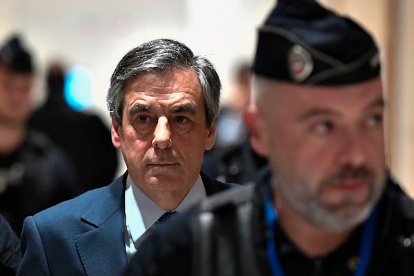 Former French prime minister Francois Fillon arrives at a Paris courthouse, on Feb. 27, 2020.STEPHANE DE SAKUTIN/AFP/Getty Images
