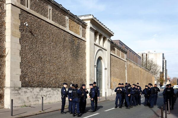 Police officers in front of the entrance of the Sante prison in Paris on Nov. 10.IAN LANGSDON/AFP/Getty Images