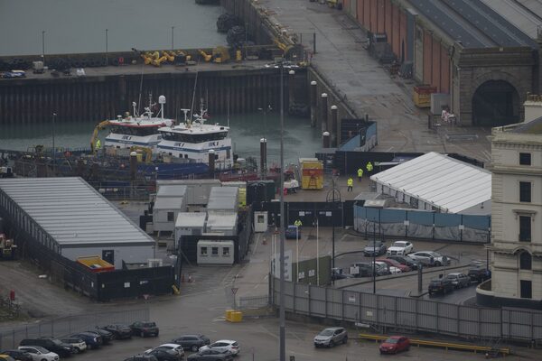 Security guards stand at the migrant processing centre in Dover, Kent, England, on March 7.Kin Cheung/The Associated Press