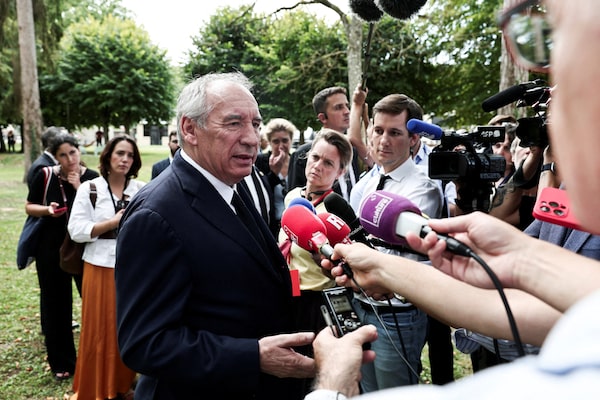 France's Prime Minister Francois Bayrou speaks to the press in Boissy-la-Riviere, south of Paris, on Tuesday.THIBAUD MORITZ/Reuters