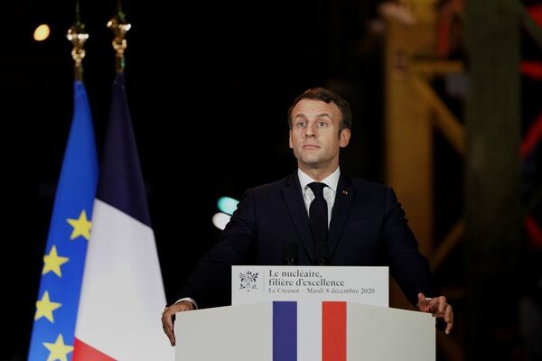 French President Emmanuel Macron in Le Creusot, France, Dec. 8, 2020.POOL/The Associated Press