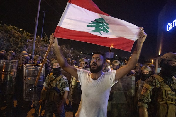 A protester waves a Lebanese flag as as soldiers attempt to disperse an anti-government march near the Presidential Palace, in Beirut, on Sept. 12, 2020.Sam Tarling/Getty Images