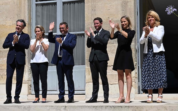 Newly-appointed French ministers arrive for a handover ceremony in Paris, on July 4.EMMANUEL DUNAND/AFP/Getty Images