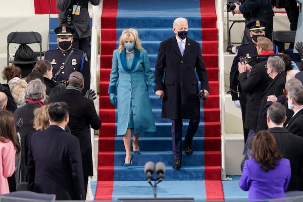 U.S. president-elect Joe Biden and his wife, Jill Biden, arrive at his inauguration on the West Front of the U.S. Capitol on Jan. 20.Patrick Semansky/The Associated Press