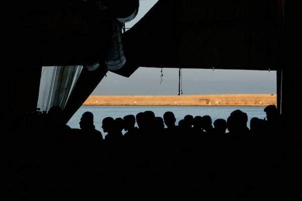 Migrants wait to disembark from the Geo Barents rescue ship, operated by Medecins Sans Frontieres (Doctors Without Borders), in Livorno port, Italy on July 23.Darrin Zammit Lupi/Reuters