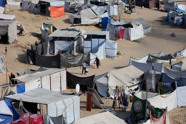A camp for displaced Palestinians in Khan Yunis in the southern Gaza Strip, on Sept. 29, 2025.OMAR AL-QATTAA/AFP/Getty Images