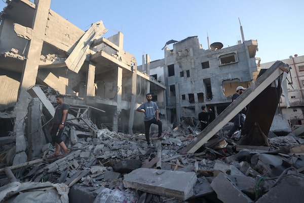 Palestinians inspect the damage after an Israeli strike on the Bureij refugee camp in the central Gaza Strip on July 23.EYAD BABA/AFP/Getty Images