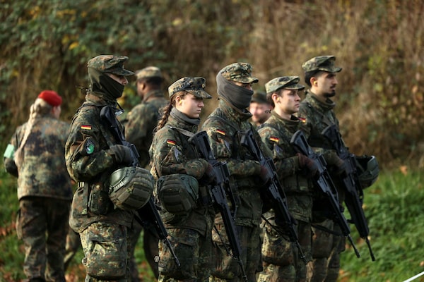Recruits attend live-fire training at the Reconnaissance Battalion as the German army showcases its new six-month basic training program designed to prepare soldiers for homeland defense and NATO operations, in Ahlen, Germany on Thursday.Leon Kuegeler/Reuters