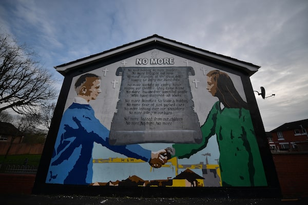 A peace mural stands in a loyalist area of Belfast on April 4, six days before the anniversary of the Good Friday Agreement that ended hostilities between unionist and nationalist forces in Northern Ireland.Charles McQuillan/Getty Images