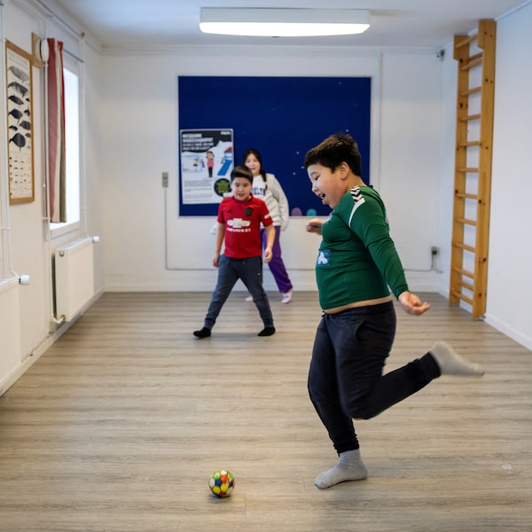 At the school, William, 8, Malerak, 7, and Viola, 7, are the only remaining students, studying beneath a map of Greenland printed in 1954. During recess, they go sledding. All three are moving away soon, and the school may close.