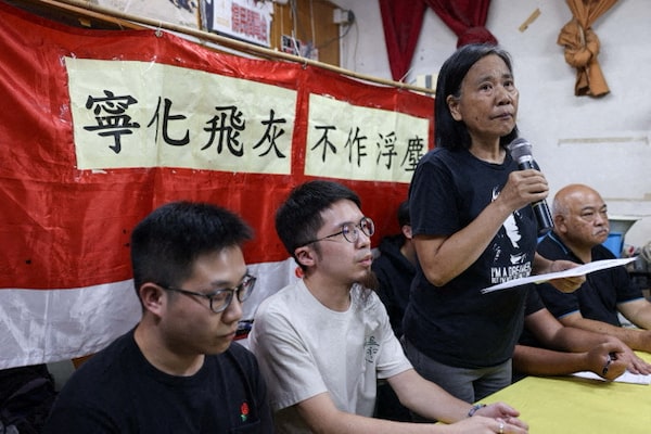Chan Po-ying, chair of Hong Kong’s League of Social Democrats, during a press conference to announce the party’s dissolution, on Sunday.Tyrone Siu/Reuters