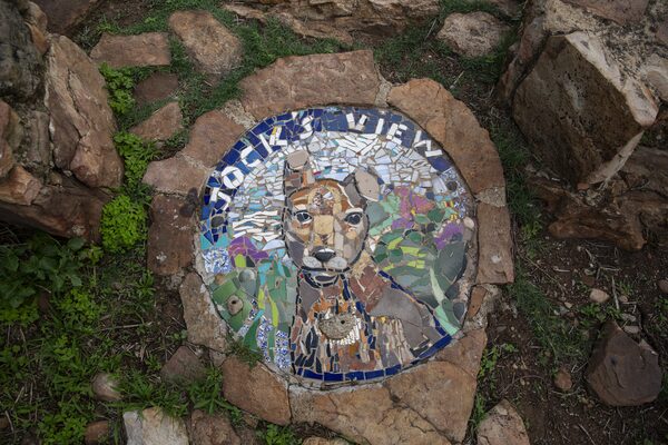 A mosaic of Jock of the Bushveld, famously immortalised by Sir James Percy FitzPatrick, at a viewpoint overlooking the Johannesburg skyline. FitzPatrick lived in a house bordering the park while he was writing the book.Madelene Cronjé/The Globe and Mail