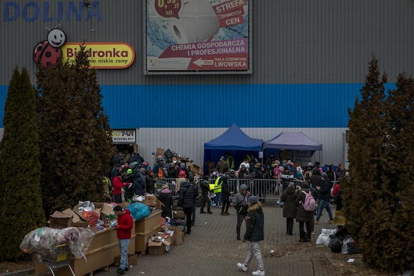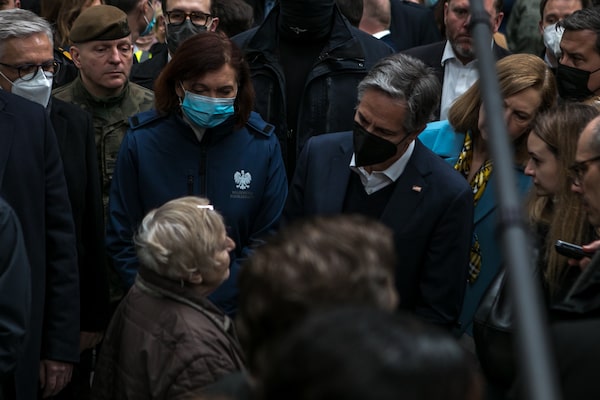 The Mlyny refugee centre – located in a vacant shopping mall that’s been renamed Kyiv Hall – is among the largest shelters in Poland. On Saturday, harried volunteers barely noticed Mr. Blinken as they tried to keep up with the constant flow of arrivals from the nearby border crossing.