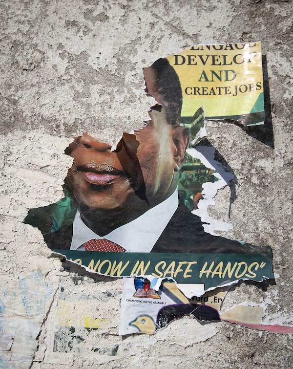A Mnangagwa poster is torn in Harare in 2018.Dan Kitwood/Getty Images