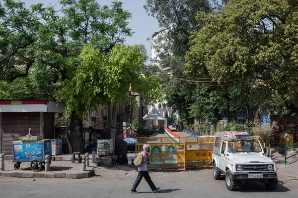 A person walks past the road that leads to the Tablighi Jamaat mosque and seminary, in New Delhi, on April 8, 2020.Rebecca Conway/The New York Times News Service