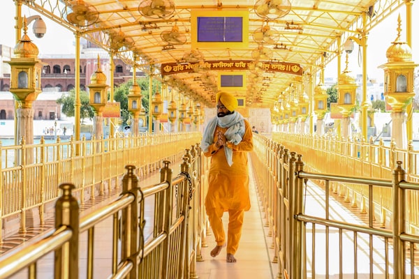 A Sikh devotee pays respect at the Golden Temple during a government-imposed nationwide lockdown as a preventive measure against the COVID-19 coronavirus, in Amritsar on Thursday.NARINDER NANU/AFP/Getty Images