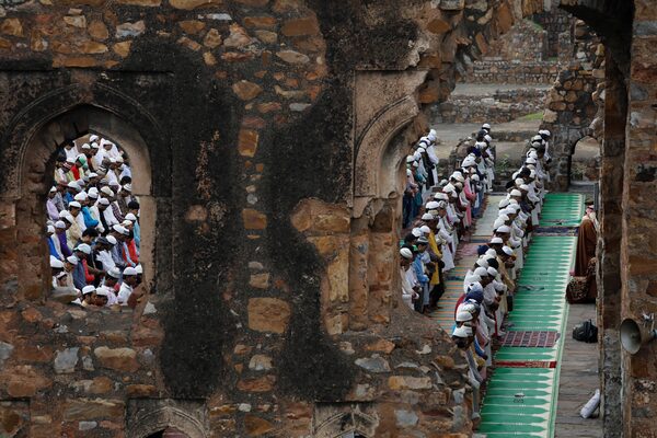 Muslims offer Eid al-Adha prayers at the ruins of Feroz Shah Kotla mosque in New Delhi on Aug. 12, 2019.ANUSHREE FADNAVIS/Reuters