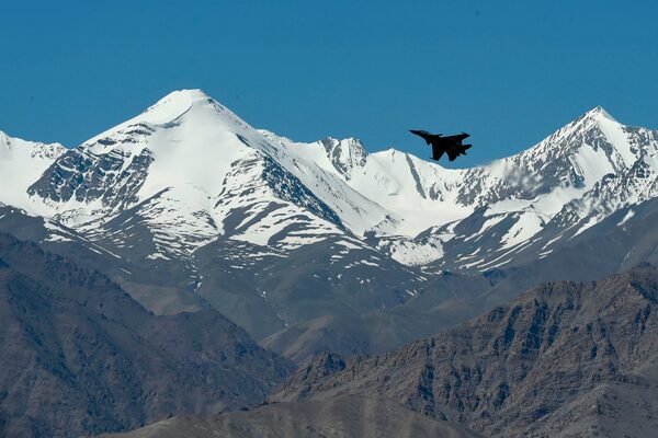 An Indian fighter jet flies over a mountain range near Leh, the joint capital of the union territory of Ladakh, on June 22, 2020.TAUSEEF MUSTAFA/AFP/Getty Images