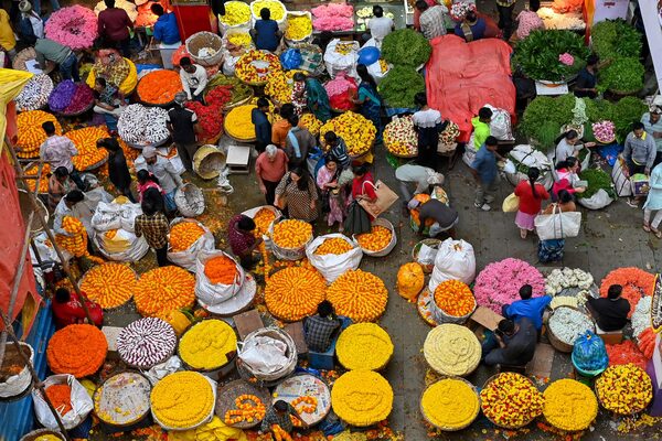 People crowd at a flower market on the eve of Diwali in Bangalore on Oct. 23.MANJUNATH KIRAN/AFP/Getty Images