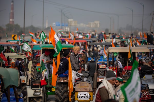 Farmers take part in a tractor rally to protest against new agricultural laws, in Ghaziabad, India, on Jan. 7, 2021.Altaf Qadri/The Associated Press