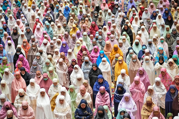 Muslim women perform an evening prayer called 'tarawih' that marks the first eve of the holy fasting month of Ramadan at Istiqlal Mosque in Jakarta, Indonesia, Saturday, April 2, 2022.Dita Alangkara/The Associated Press