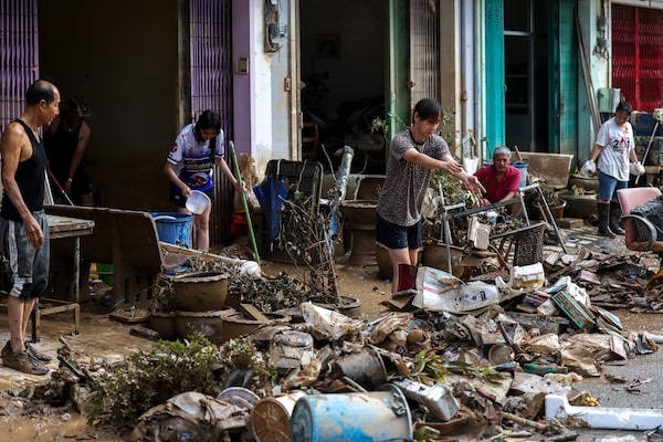 People clear mud and debris from their houses in a flooded area in Hat Yai district, Songkhla province in Thailand.ATHIT PERAWONGMETHA/Reuters