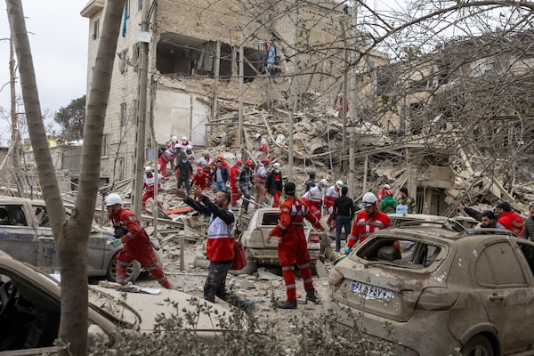 Emergency crews search for people trapped in rubble following a strike on a residential building in Tehran on Monday.Getty Images/Getty Images