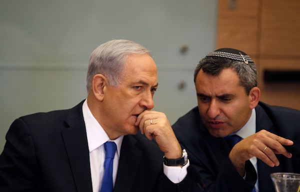 Israel's Prime Minister Benjamin Netanyahu, left, listens to security cabinet member Zeev Elkin during a 2014 committee meeting in Jerusalem.Ronen Zvulun