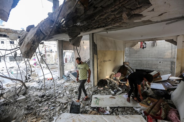 People search through buildings that were destroyed during Israeli air raids in the southern Gaza Strip on October 28, 2023 in Khan Yunis, Gaza.Ahmad Hasaballah/Getty Images